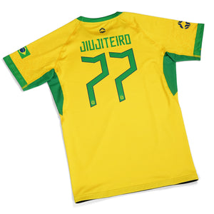 A brazil ikonikus mezek ihlette klasszikus dizájnnal a Football Brazil Rashguard a pálya energiáját egyenesen a szőnyegre, a ringbe, az edzőterembe vagy bárhová, ahol komolyabb edzésre vágysz, hozza el. Könnyű, lélegző és testhez simuló szabásával ez a rashguard több mint tisztelgés – ez egy teljesítménynövelő felszerelés.